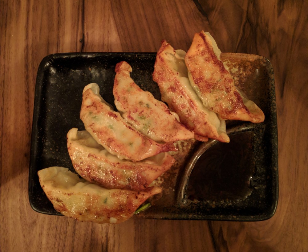 Ne sachant pas si un Ramen allait me suffir et étant tenté par les petits accompagnements proposés, j’ai pris les « Gyozas » qui sont des petits raviolis japonais fourrés de légumes et de poulet, à déguster avec une sauce soja. Un délice qui m’a donné l’eau à la bouche pour le plat principal. Cependant, les Ramen étant bien nourrissants, les « Side-dish » ne sont pas forcement nécessaires, mais valent la peine comme plaisir gustatif !