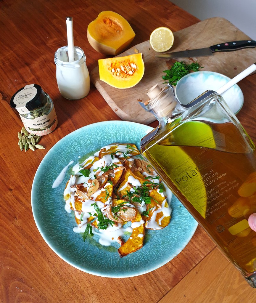 Ce plat a donc une histoire par les produits utilisés, notamment la courge bio de mon ami agriculteur Philippe ou encore le yaourt de la ferme de Corinne, mais aussi par son goût tout en restant dans la simplicité.