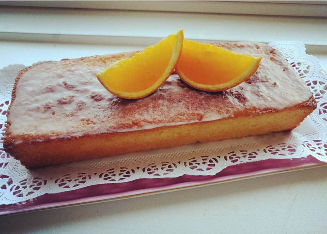 5. Laisser refroidir le cake et préparer le glaçage : Presser le jus d’une orange et mélanger avec le sucre glace. Verser sur le cake froid.